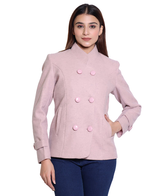 Women’s Stylish Winter Double Breasted Wool Blend Short Coat | Collared Neck Jacket