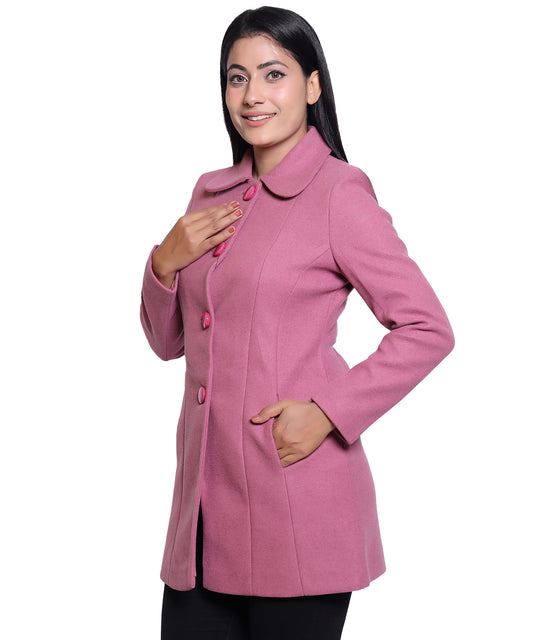 Women Solid Knee Length Woven Overcoat/Blazer with Wool Blend for Comfort Fit