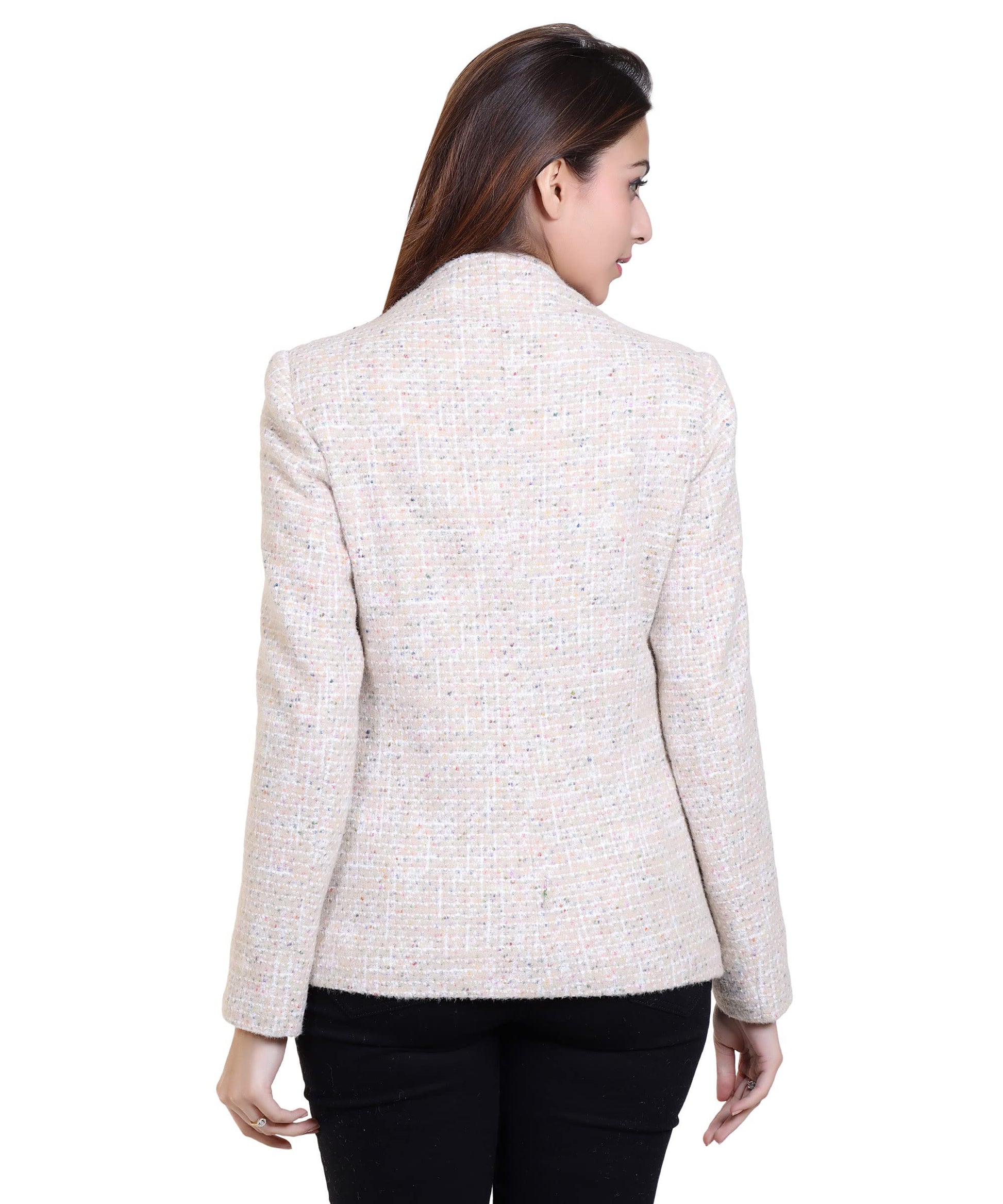 Women Self Design Long Sleeves Designer Collared Short Coat