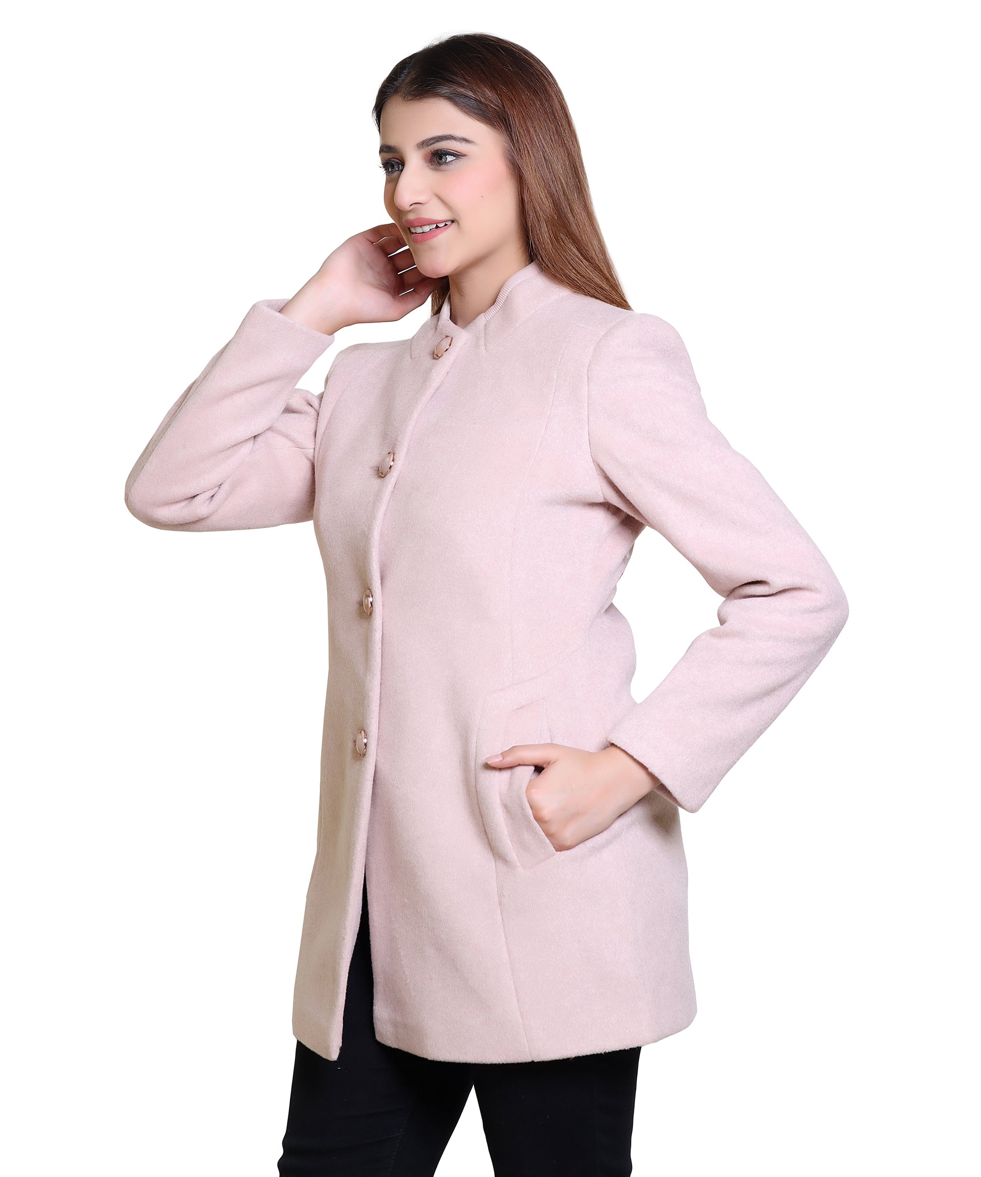 Women Solid woven hip length coat with a standing ban designer collar, long sleeves button closure with two pockets. This winter be cozy and stylish with this amazing coat from comfy sparrow. Layer it over a dress for a killer look. Feel the warmth in the chilly winter & lend in style with this woolen coat from the house of comfy sparrow. This beautiful piece can belayered over any casual to formal attire while going out.