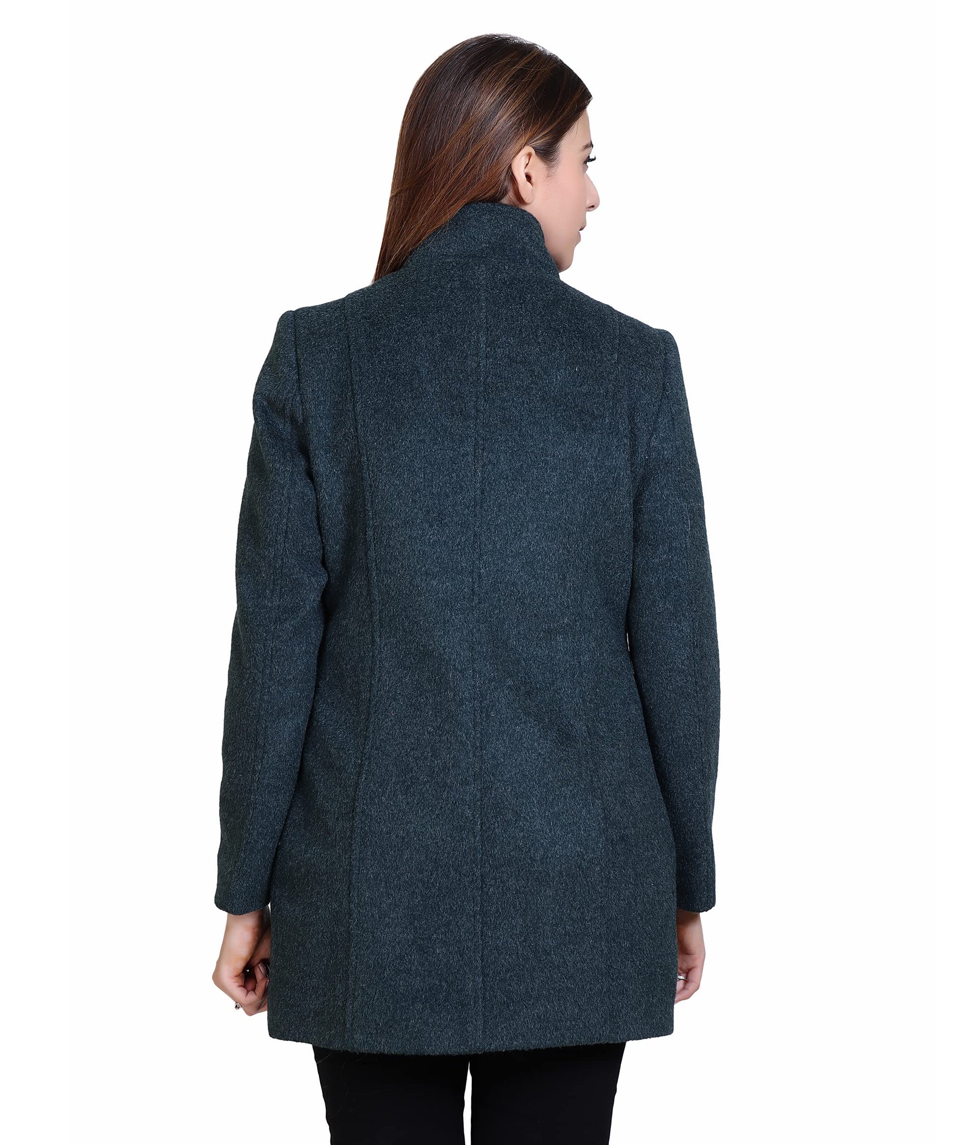 Women Standard Length Wool Blend High Collar Long Sleeve Overcoat